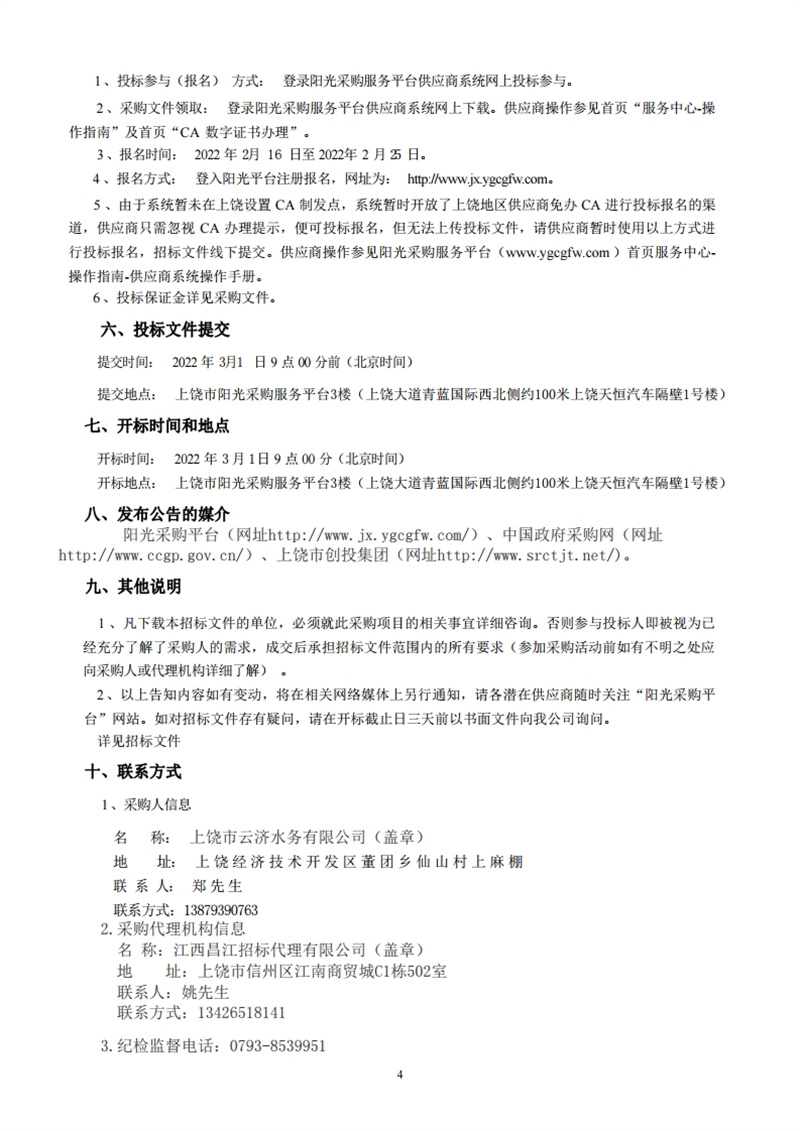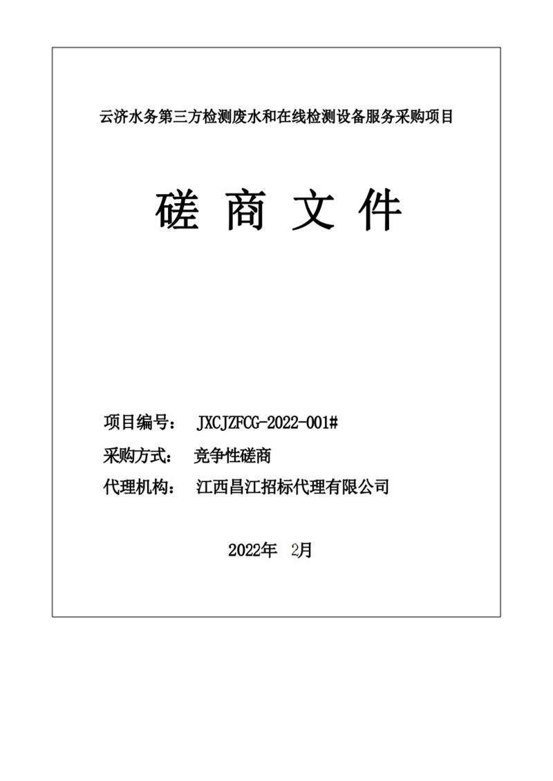 江西昌江招標(biāo)代理有限公司關(guān)于云濟(jì)水務(wù)第三方檢測廢水和在線檢測設(shè)備服務(wù)(項(xiàng)目編號(hào):JXCJZFCG-2022-001#)競爭性磋商采購公告